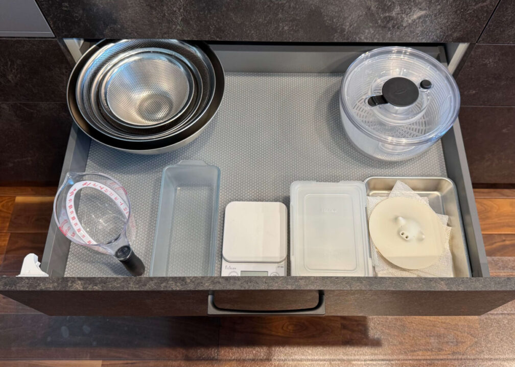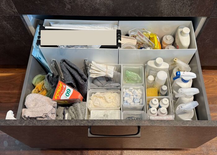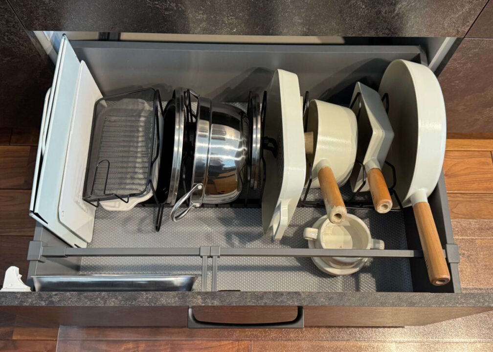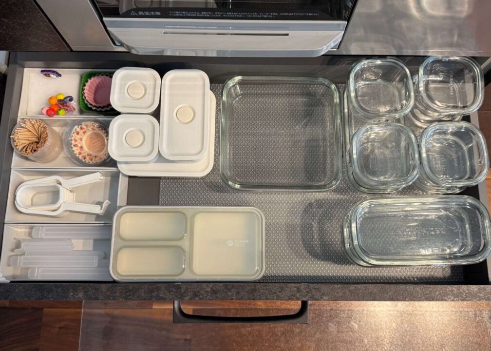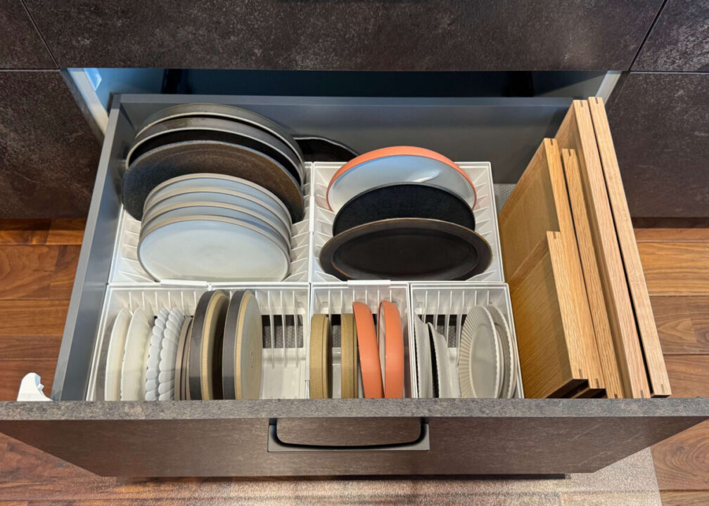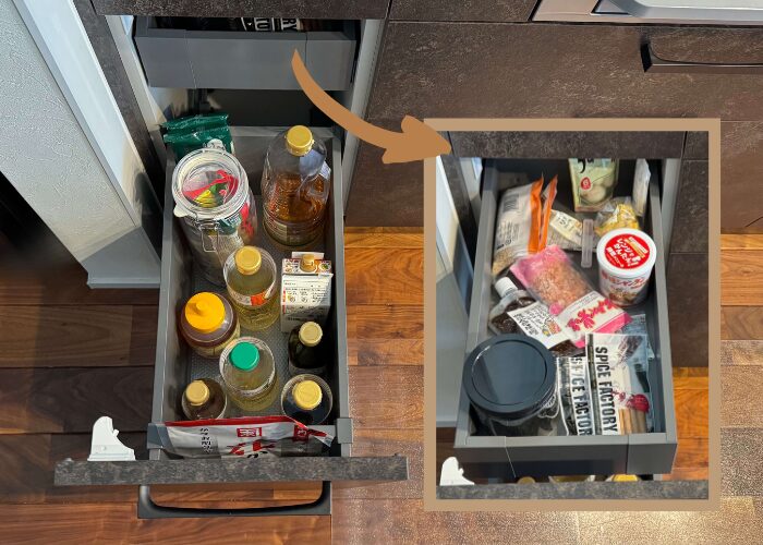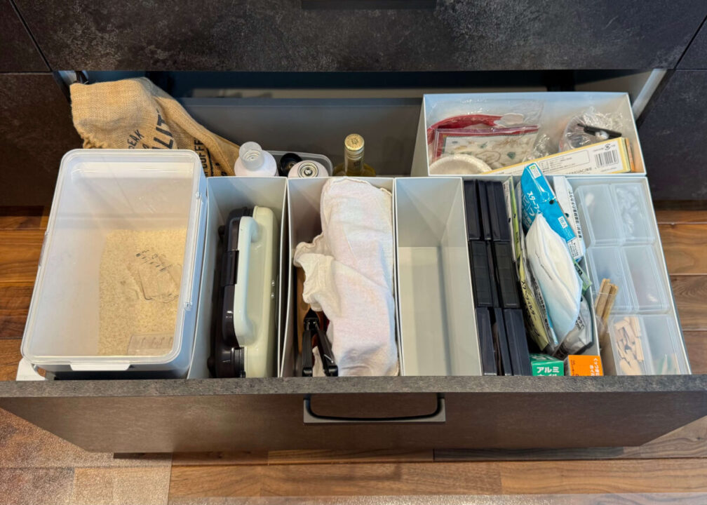 キッチンハウスの引き出しは仕切りがないからこそ、収納グッズを使って空間を細かく仕切ることが大切。